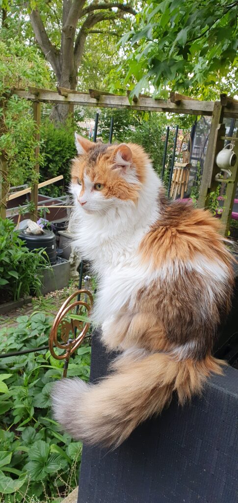 Als we thuis waren was ze overdag lekker buiten met mooi weer en ’s avonds kroop ze lekker bij ons op de bank op schoot. Ze wist heel goed duidelijk te maken wanneer ze buiten of weer naar binnen wilde.