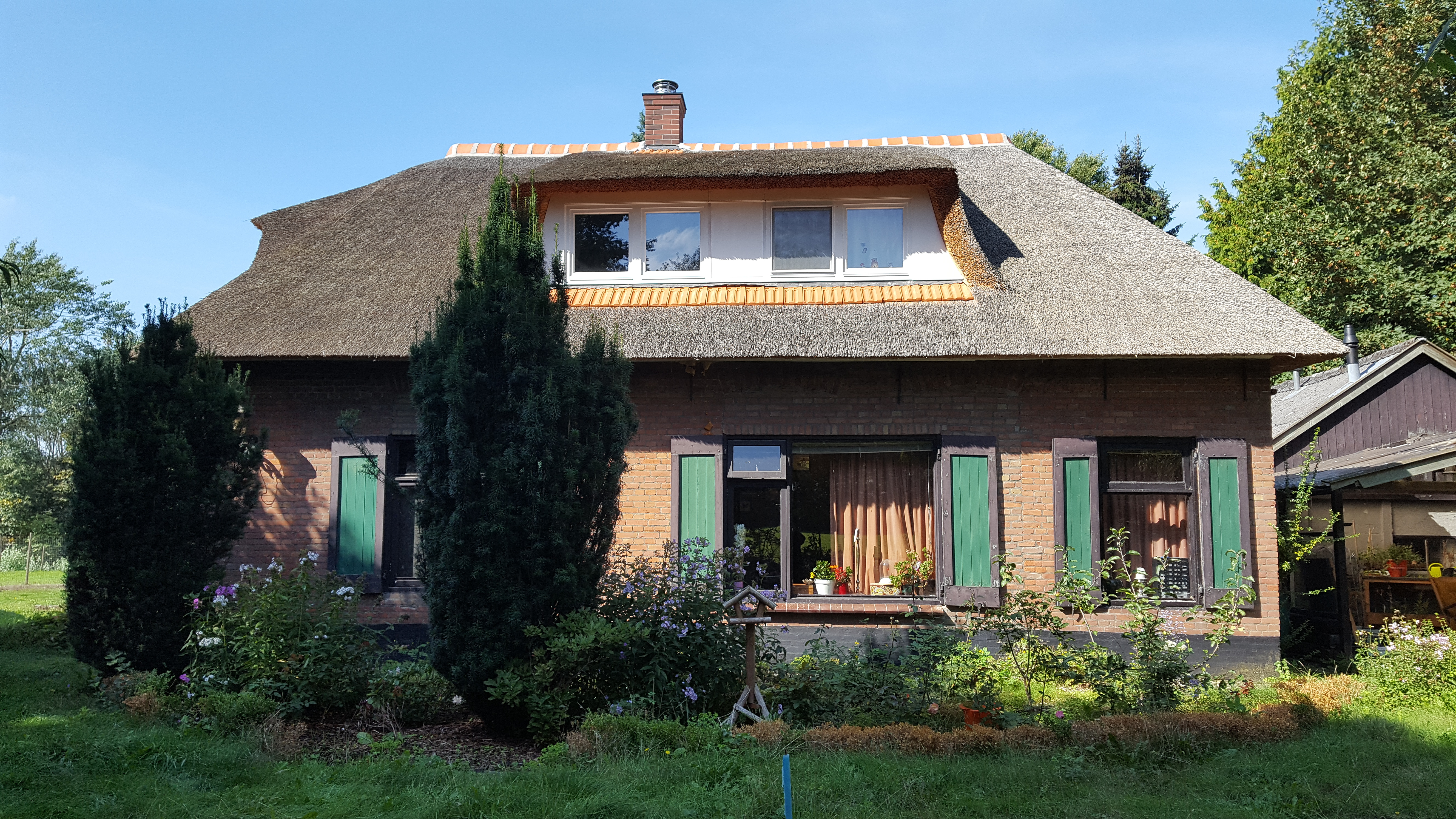 In onze omgeving zijn de afgelopen twee jaar nog veel meer daken opnieuw met riet gedekt. Zo konden wij ons dak met andere daken vergelijken en tot ons geluk zagen wij dat Herbert een veel dikkere laag riet heeft gedekt dan bij andere huizen te zien is. Dat is heel erg fijn, want hoe dikker de laag riet, hoe langer het mee gaat!